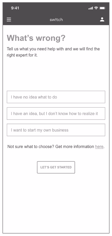 This project was developed during my training as a UX designer at CareerFoundry. The objective was to enable people to get in contact with an expert quickly and easily. The exact choice of the topic and its elaboration was up to me.